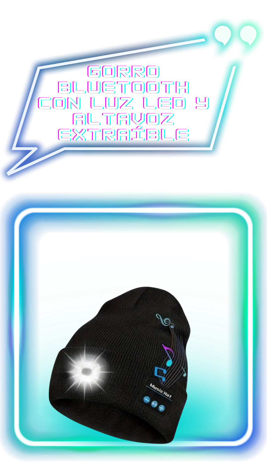 Gorro Bluetooth con luz LED frontal y altavoz extraíble recargable por USB